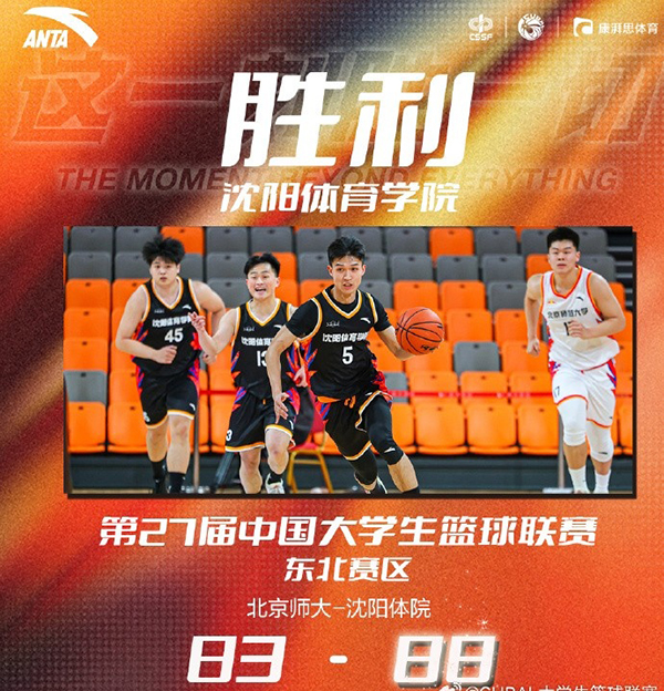 jrs直播网3月13日讯 CUBAL东北赛区进入第三轮对决,北京师范大学和沈阳体育学院迎来一场交手。首节开局苏克和肖洋的两记三分帮助北京师大取得8-1的开具;沈阳体院开局稍显慢热,不过袁舒松连续冲击篮下拿分破荒后和对手开启拉锯战;双方之后一路僵持几乎只有一个球的差距,末段又是袁舒松的连续拿分帮助沈阳体院拿到本场第一次领先,不过北京师大最后依靠吴士广的罚球重新取得1分领先结束第一节。次节北京师大又是三分打开局面并最多拿到6分领先,这之后双方都遭遇短暂得分荒,但沈阳体院率先破荒并依靠李杰的三分拿分,他们也顺势送上一波11-4的攻势一举反超比分,北京师大最后时刻找回感觉,肖洋最后再度命中三分并帮助球队51-45领先沈阳体院进入下半场。休息归来沈阳体院连续抓反击抢分,姜相杰外线命中三分的同时还能在内线制造杀伤罚球抢分,沈阳体院送出12-2的攻势一举反超比分;北京师大攻防两端全面落入下风,肖洋的2+1帮助球队破荒但无力阻止颓势,而沈阳体院在李杰的罚球和三分进球中掌控比赛并取得5分结束第三节。末节开局双方失误不断,李杰一直保持着不错的状态并在开局连续拿分为沈阳体院守住优势;北京师大则不断冲击篮下抢分,双方交替得分分差一直都不大,北京师大多次追至一球差距但始终无法扭转局势,毕洪贺最后制造犯规两罚全中拉开3分领先,北京师大则在最后时刻出现失误错失机会。最终,沈阳体育学院力克北京师范大学拿下比赛。
