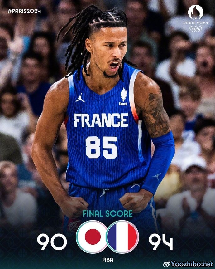 jrs直播网7月31日讯 奥运男篮小组赛B组,法国对阵日本。一开场,双方很快陷入缠斗,比分始终紧咬,法国不断冲击篮筐拿分,日本连中三分还以颜色,亚布塞莱连中三分,日本内外开花一波8-0一度反超比分,法国及时回暖完成9-2的小高潮,半场战罢法国49-44领先5分。下半场,日本率先发力打出8-2反超比分,此后双方展开拉锯战,比分交替领先,法国一波7-0占据主动,末节八村塁累计违体犯规被驱逐,河村勇辉3+1连得6分带队反超,双方争夺陷入白热化,戈贝尔误伤巴图姆导致后者嘴里出血,关键时刻富尼耶三分扳平比分,河村永辉4罚全中后斯特拉泽尔3+1再度抹平分差,河村永辉超远三分绝杀不中,双方进入加时。加时赛,文班亚马统治攻防两端,个人连得8分,日本连中三分但依旧无力回天。最终,法国加时94-90力克日本。