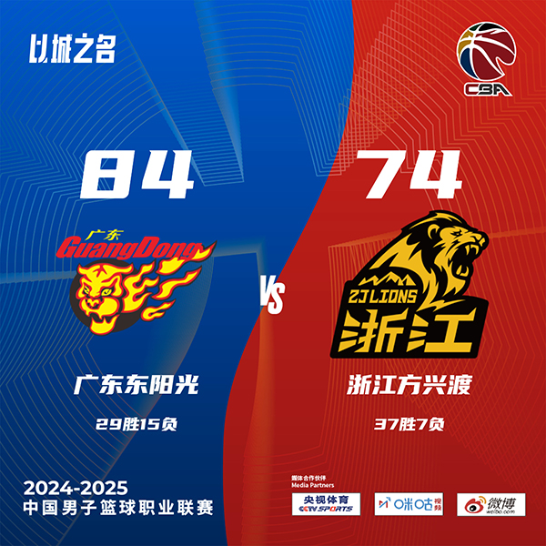 来源:jrs直播网03-25 08:25 jrs直播网讯:北京时间3月24日消息,2024-25赛季CBA常规赛继续第44轮角逐。坐镇主场的广东男篮经过四节较量以84-74战胜浙江广厦男篮,取得2连胜;广厦队6连胜终结。