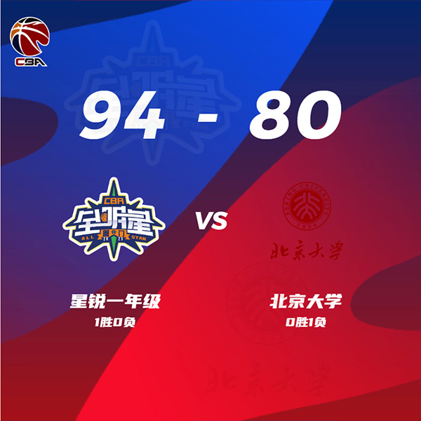 jrs直播网3月25日讯 CBA全明星周末正式拉开大幕,首先进行星锐赛,由星锐一年级对阵北京大学,星锐一年级由本赛季表现不错的新星组成,北京大学队则是由北京大学的球员组成。比赛一上来,星锐一年级焦泊乔接连内线暴扣打出11-2不错开局,而李苑鑫则是独自撑起北京大学的进攻,林葳主要串联球队,曾凌铉接连外线发炮,李弘权也是里突外投连续取分,星锐一年级还是很快建立起双位数领先。下半场,星锐一年级让更多球员登场亮相,李苑鑫带领北京大学一度追到个位数分差,而星锐一年级得分点众多很快稳住局势,末节星锐一年级连续失误,北京大学接连打成反击一度追到差4分,但星锐一年级迅速回应一波10-0稳住局势,北京大学再无翻盘机会,最终星锐一年级94-80战胜北京大学。