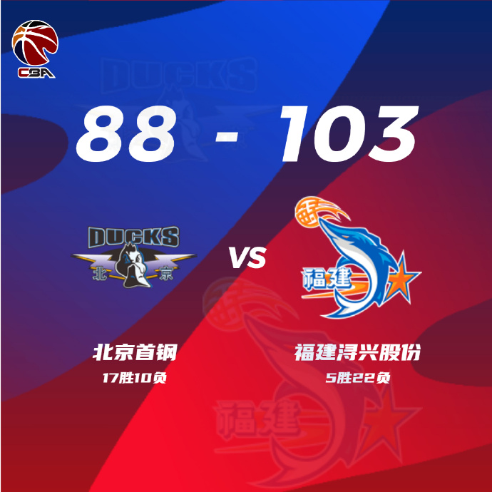 jrs直播网1月16日讯 CBA常规赛继续进行,北京迎战福建,福建上场赢球后战绩为4胜22负,目前仍然排在联赛倒数第二,北京近期遭遇连败,目前17胜9负排在联赛第6位。此役曾凡博复出,利夫轮休缺席。首节一上来福建进攻状态低迷,慢热的他们首节仅得到17分,北京外援尼克-约翰逊单节里突外投独得11分,首节结束时北京已经领先14分,次节回来,北京稳扎稳打始终保持优势,福建逐渐找到状态,末段北京进攻突然哑火,福建一波13-3迫近比分,半场战罢,北京只领先2分。易边再战后北京进攻依然毫无起色,福建延续进攻火力,梅克和陈林坚内外开花,亚当斯续上火力,福建接连打出得分高潮一举反超,三节结束后福建确立17分优势,末节上来,曾凡博接连取分,无奈分差过大北京追分未果,最终福建103-88大胜对手。