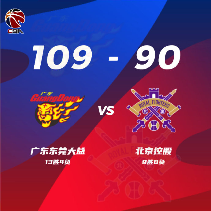 双方比分及数据: 单节比分:42-18、25-21、30-23、12-28(广东队在前)。 广东(13-4):易建联25分9篮板、徐杰12分11助攻0失误、王薪凯14分3篮板、杜润旺16分3篮板、汉密尔顿5分7篮板、赵睿6分5助攻、张明池4分5篮板7失误5犯规、张昊6分8篮板4失误4犯规、曾茂洲5分7篮板2助攻、任骏飞10分6篮板4助攻、布鲁克斯6分4篮板8助攻2抢断