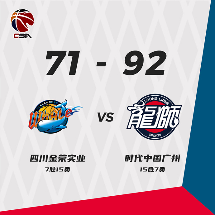 jrs直播网1月13日讯 四川和广州今日迎来一场交手,四川上一场击败宁波结束连败,广州近期取得3连胜登上第八的位置。首节之争广州凭借陈盈骏连续两记三分打出12-4的开局领先,虽然他们的优势很快就被对手蚕食,但梅森领衔第二波攻势帮助广州重新取得6分领先结束第一节。次节拉锯战两队你追我赶都占不到太大的便宜,四川节末一度追至6分,但最后时刻郑准突然的两记三分将分差拉大至12分进入下半场。第三节广州凭借上半场的优势一路占据上风,但每一次拉开比分他们都无法彻底打垮对手,顽强的四川这一节最多落后17分,但第三节结束时将劣势追至10分保留希望,不过末节广州一波8-0的攻势再度拉开比分,四川没能再度起势追分,广州压节奏确保大比分领先稳稳收下比赛。最终,广州轻取四川迎来4连胜。