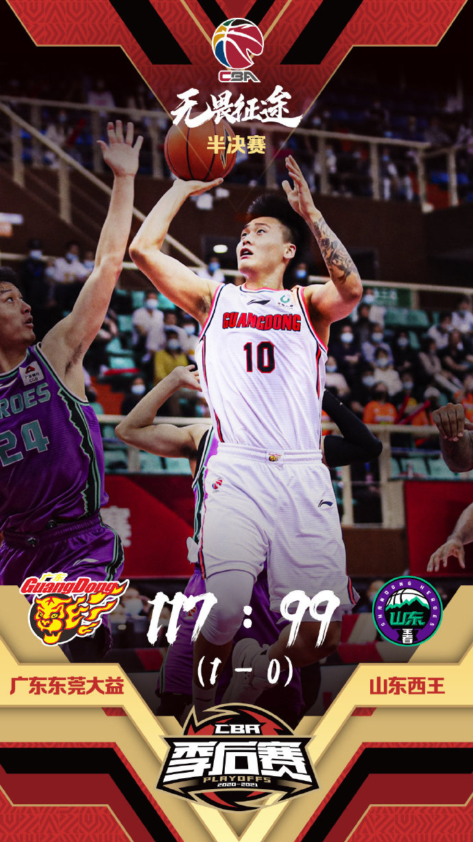 jrs直播网4月20日讯 CBA季后赛半决赛第一场,广东今日迎战山东,前者夺得常规赛冠军直接进入八强,之后又绝杀北京晋级,而后者则是连克广州和新疆进入半决赛。比赛上来场上就呈现出一边倒的局面,整个第一节山东仅拿到16分,分差也被广东迅速拉开到了两位数,进入次节山东依旧无法限制住对手的攻势,半场结束时场上分差已经达到了30分。易边再战,广东的命中率开始出现下降,而山东的状态终于有所好转,不过分差始终没有缩小到15分以内,比赛早早就失去了悬念,最终广东大胜山东,迎来半决赛开门红。