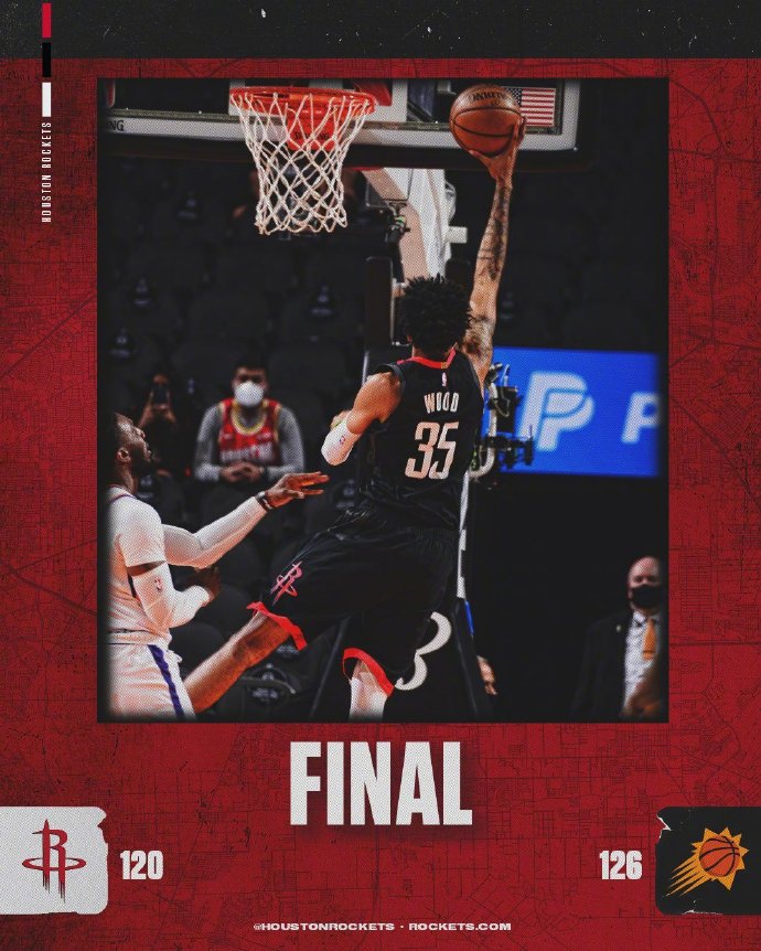jrs直播网4月13日讯 火箭做客菲尼克斯挑战太阳,目前火箭排名联盟倒数第二,仅领先倒数第一的森林狼半个胜场,而太阳距离联盟第一则还差2.5场。首节上来两队势均力敌一路僵持,沃尔和伍德合砍21分为火箭攻城拔寨,然而太阳的板凳球员却是技高一筹,节末一波16-4的攻击波确立了两位数的领先优势,次节太阳的三分雨仍在继续,尤其是克劳德大放异彩半场即命中8记三分,而全队24中18高达75%的三分命中率也是着实恐怖,太阳带着23分的优势结束半场。第三节火箭利用太阳的松懈打出一波19-7的攻击波迫近分差,可之后过多的失误却让他们未能更进一步,末节顽强的火箭又在布鲁克斯和威尔森的带领下送出19-5的攻势将分差缩小到5分,怎奈关键时刻还是棋差一着,艾顿制霸禁区让火箭的努力化为泡影,最终太阳主场126-120战胜火箭。