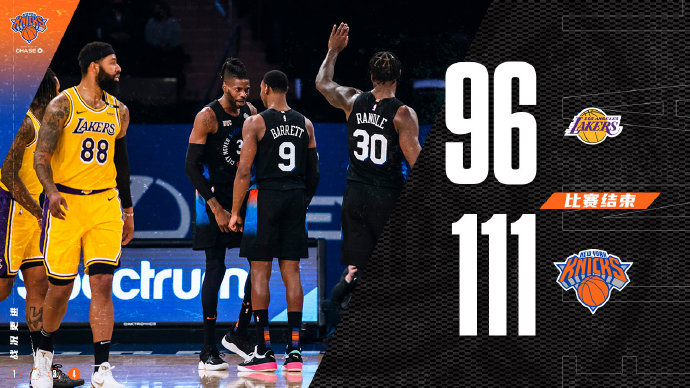 jrs直播网4月13日讯 客场击败篮网之后,湖人留在纽约挑战同城另一支球队尼克斯,尼克斯近期两连胜稳住自己东部第八的位置。首节争夺两队势均力敌一路僵持,兰德尔面对旧主砍下13分为尼克斯攻城拔寨,不过节末湖人外线下起三分雨并用一波17-7的攻势反超2分,次节之争尼克斯角色球员不断站出来拿分,除了兰德尔和罗斯等人的发挥外,佩顿末段连砍8分帮助尼克斯反超3分结束半场争夺。第三节的争夺湖人在拉锯战中出现了4分钟的得分荒,尼克斯抓住难得机会打出连续反击最多取得15分领先,末节顽强的湖人再度追近比分,期间10-0的攻势让他们重新看到希望,然而兰德尔再一次站出来并连拿6分弑杀旧主,尼克斯重新取得两位数领先奠定胜局。最终,尼克斯击退湖人迎来3连胜。