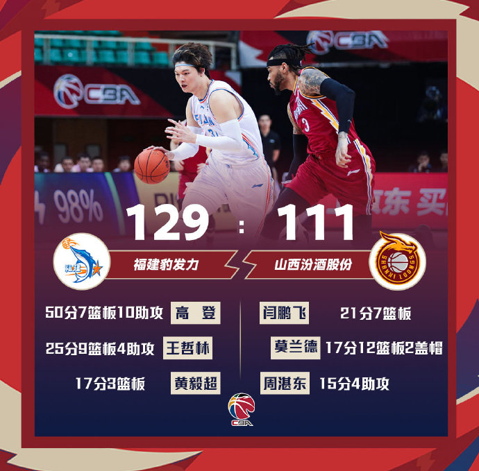 福建(11-38):高登50分7篮板10助攻2断,王哲林25分9篮板4助攻,陈林坚9分3篮板,黄毅超17分3篮板,李江淮11分6助攻2断,孙喆10分9篮板,卡米然3分