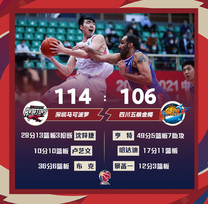 深圳(26-21):布克36分6篮板4助攻2断,沈梓捷29分13篮板4助攻3断1帽,卢艺文10分10篮板2助攻2断,顾全4分3助攻2断,贺希宁9分2助攻,杨林祎10分4篮板,伯顿14分,于梁2分