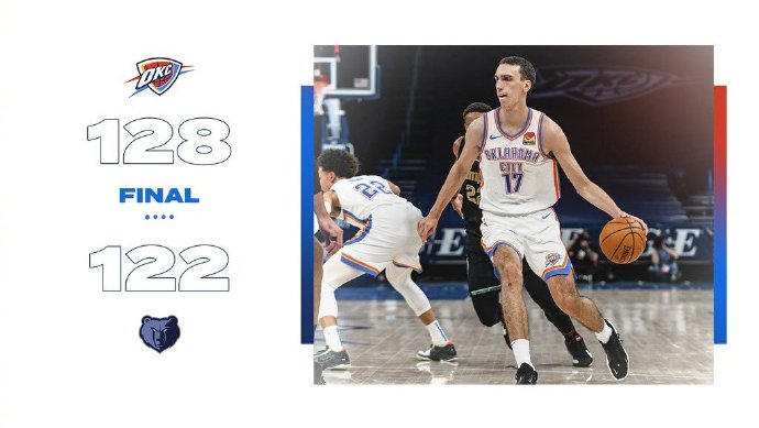 雷霆(17-22):亚历山大30分4篮板5助攻,波库舍夫斯基23分10篮板4助攻,贾斯丁-杰克逊4分4篮板2助攻,摩西-布朗13分4篮板,杰罗姆12分6篮板5助攻,达柳斯-米勒11分3篮板4助攻,穆斯卡拉8分3篮板,罗比10分8篮板,肯里奇-威廉姆斯17分4篮板3助攻