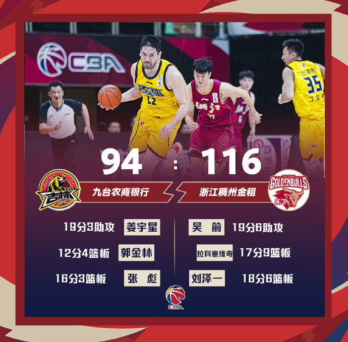 吉林(23-21):姜宇星19分3篮板3助攻,郭金林12分4篮板2助攻3抢断,张彪16分3篮板,崔晋铭4分2篮板3助攻,丁皓然9分3篮板3助攻,刘天意11分4篮板,付博文8分3篮板2助攻,钟诚6分3篮板,李安4分,姜伟泽3分2助攻,孔德高2分