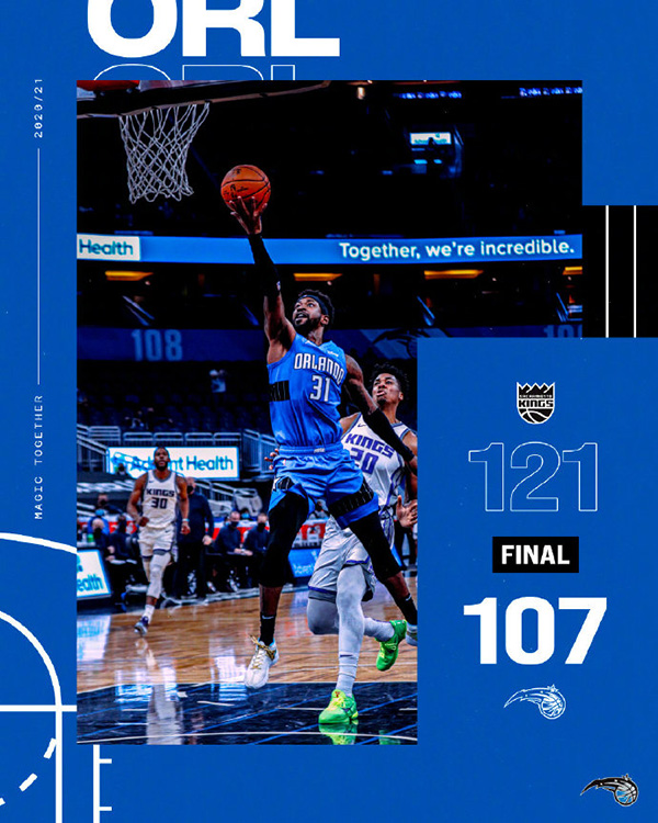 jrs直播网1月28日讯 NBA常规赛魔术对阵国王,开场后国王就在外线展现不俗的手感取得领先,魔术依靠武切维奇和富尼耶的发挥追赶比分,虽然魔术在第二节一度将分差缩小到2分,但国王外线又是三分雨下拉开比分,上半场国王65-50领先魔术。下半场回来福克斯和希尔德两人继续轮番砍分,国王不断扩大领先,虽然富尼耶和武切维奇努力追分,但国王没有让魔术缩小分差,最终国王121-107拆穿魔术。