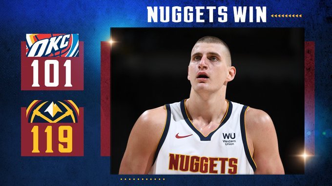 jrs直播网1月20日讯 掘金今日坐镇主场迎来同为西北赛区对手雷霆的挑战,首节两队状态出色一路对攻,雷霆在拉锯战中一度取得7分领先,然而首节末的2分钟和第二节初的2分钟里,雷霆一路哑火导致局面陷入被动,掘金打出跨节15-0的攻势扭转局势,而在随后雷霆疯狂追赶中,掘金第二节末连中三记三分送出16-6的攻势一举拉开13分领先结束上半场。下半场的雷霆兵败如山倒,掘金在第三节末内外开花很快就将分差拉大至20分以上早早奠定胜局,末节之争雷霆仍然没有回暖迹象,掘金稳守大比分领先直到结束。最终,掘金主场轻取雷霆拿下比赛。