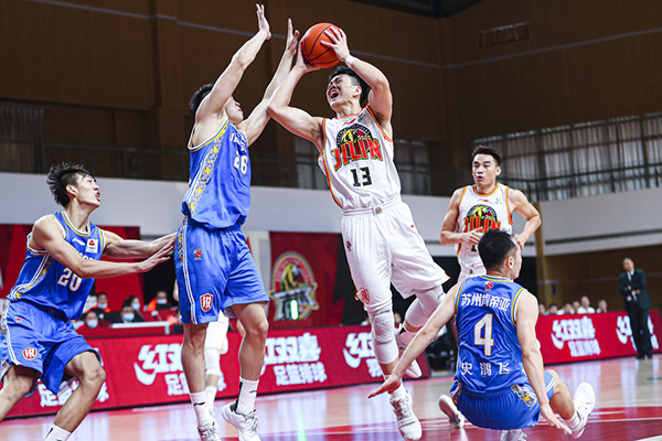次节,钟诚长传前场代怀博扣篮得手,黄荣奇底角三分命。暂停回来,姜伟泽右翼三分命中,黄荣奇快攻上篮得分,刘宇轩三分再中后,姜伟泽继续外线还以颜色,随后反击打成2+1,史鸿飞大号三分命中,郑祺龙左翼三分命中,半场结束,吉林54-42领先江苏。