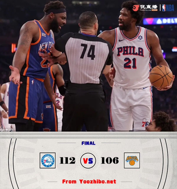 jrs直播网5月1日讯 NBA季后赛东部首轮G5,尼克斯今日回到主场迎战76人,目前尼克斯已经大比分3-1拿到赛点,本场76人已无路可退。比赛上来,尼克斯进入状态较慢半节的时间只拿到2分,76人打出10-2的开局取得领先,整个第一节尼克斯只拿到17分,不过到了次节局势突变,尼克斯轰出18-2的攻势反超比分,分差也是逐渐拉开到两位数,马克西打进压哨上篮,半场结束时76人落后6分;下半场回来,76人在马克西的带领下打出小高潮,他们也是重新获得领先,之后两队一直保持拉锯,比赛悬念保持到了最后,关键时刻76人连续出现失误被尼克斯打反击,马克西轰进追平三分,布伦森绝杀上篮被巴图姆扇飞,比赛进入加时,加时赛上来布伦森连拿5分,不过76人随后就用9-0的小高潮实现反超,最后时刻双方相继出现失误,哈里斯两罚全中,巴图姆再帽布伦森杀死悬念,最终76人加时战胜尼克斯,大比分追至2-3。