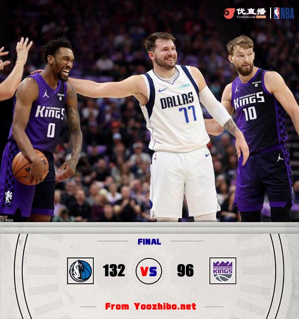 jrs直播网3月27日讯 NBA常规赛,国王主场迎战独行侠,目前两队都是42胜29负,国王西部第6位,独行侠西部第7位,本场关键卡位战对两队很是关键。比赛上来,双方就迅速进入状态展开对攻战,东契奇有攻有传继续撑起球队进攻,而华盛顿外线火热弹无虚发,小萨博尼斯也是继续全面发挥,国王全民皆兵能回应,首节独行侠领先3分,次节东契奇开启得分模式,里突外投半节就上双,福克斯也手感回暖给出回应,双方展开拉锯战,半场独行侠继续领先5分。下半场,欧文上来开始发力,里突外投连砍10分帮助球队一波小高潮拉开双位数领先,随后独行侠进攻端持续发力,华盛顿里突外投连续取分,独行侠瞬间拉开20分以上领先,末节欧文外线连续发炮继续扩大领先,国王外线始终不开,最终独行侠132-96大胜国王,拿到5连胜同时升至西部第6位。