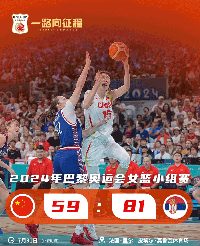 jrs直播网7月31日讯 奥运女篮小组赛A组,中国女篮迎来小组赛第二个对手塞尔维亚女篮。比赛开始,中国女篮很是慢热半节仅得4分,王思雨一扫颓势首节独揽7分,黄思静和韩旭也接连外线开和,但塞尔维亚全民皆兵能给出回应,首节中国女篮落后6分,次节韩旭接连内线造杀伤追分,杨力维外线也开和,李月汝强打追平比分,双方展开拉锯战,塞尔维亚女篮半场还是领先6分。下半场,中国女篮进攻端还是不流畅,塞尔维亚顺势拉开双位数领先,中国女篮单节仅得11分,三节落后到12分,末节塞尔维亚6-0继续扩大领先,李梦接连三分终于止血,黄思静神仙球三分续命,但塞尔维亚总能回应拉开20分以上领先,最终中国女篮59-81不敌塞尔维亚。