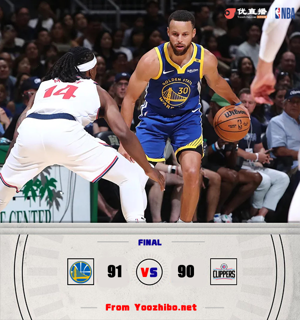 jrs直播网10月6日讯 NBA季前赛,勇士对阵快船,库里和哈登均先发出战。开场后哈登和祖巴茨多次形成连线帮助快船取得领先,随后勇士依靠提速反击回敬一波9-0攻势,哈登连续制造三分犯规和打进3+1帮助快船再度领先,勇士依旧靠着反击将比分咬住。第二节快船依旧失误较多,勇士趁机反超比分,哈登站出来连续制造罚球为快船稳住阵脚,穆迪两记三分帮勇士领先结束上半场。下半场回来两队替补阵容都打得比较乱,失误频频,此后双方打得相当胶着,最后时刻沃特斯完美执行战术完成三分压哨绝杀,勇士91-90险胜快船。
