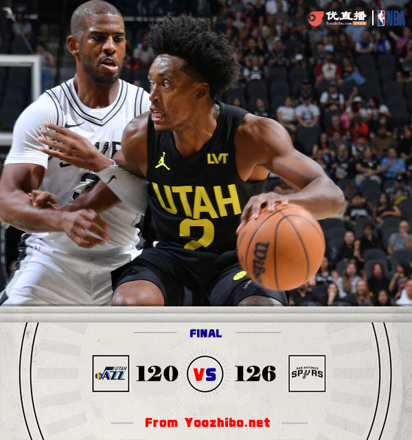 jrs直播网 10月13日讯 NBA季前赛今日继续开打,马刺今日迎来和爵士的对决,文班亚马因为个人原因缺席本场比赛。首节爵士虽然以9-3开局但很快就被马刺迎头赶上,双方第一节状态相当分差一直很小;次节场面依旧,双方这一节最大分差不过5分,普雷斯顿最后的进球帮助马刺追至1分进入下半场。休息归来双方火力全开,第三节单节两队均拿到近40分的高分但分差始终僵持;末节双方尽遣替补,马刺先是一波8-0反超比分,末段又是一波10-2的攻势拉开7分优势奠定胜局。最终,马刺力克爵士拿下比赛。