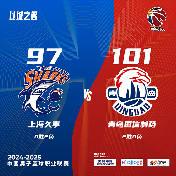 jrs直播网10月16日讯 CBA常规赛继续进行,首战加时不敌北京的上海主场迎战青岛,此役上海外援埃格伯努迎来加盟后首秀。首节开打后青岛内线接连取分,但随后青岛进攻突然断电,上海轰出17-2攻击波确立优势,末段场上形势风云突变,青岛及时复苏多点开花抹平分差,首节结束时双方战成21平,次节回来,两队外线手感依旧不佳,中段青岛杀伤内线一波12-2拉开比分,半场战罢,青岛领先12分。短暂休整后沃特斯找到手感连中三分,王哲林和威尔逊续上火力,上海一度迫近比分,但青岛总能及时回应,三节结束后青岛依然领先13分,末节上来,青岛稳扎稳打牢牢占优,末段杨瀚森两罚不中,刘铮连中三分拉回悬念,段昂君两罚一中后沃特斯绝平三分未果,最终青岛101-97击败对手迎来两连胜,同时送给上海两连败。