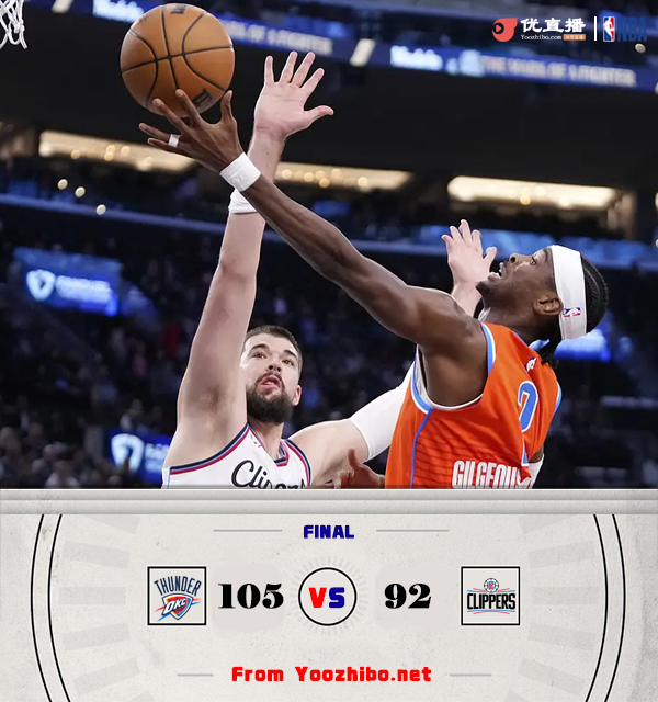 jrs直播网11月3日讯 NBA常规赛继续进行,快船今日坐镇主场迎战雷霆,快船近期状态不佳连续两场小比分憾负;雷霆则状态大热,他们开季5场比赛场均净胜分超过两位数的优势保持不败领跑西部。首节之争雷霆状态慢热单节仅得到19分,反倒是主场作战的快船迅速接管比赛以12-4开局并占据主动;次节雷霆迅速找回进攻火力单节轰下34分,但快船这边一直保持稳定输出,哈登半场送出10+9+4+3断带领球队守住4分领先。休息归来雷霆在猛攻半节之后收到成效,中后段半轮换间隙他们抓住机会送出12-4的攻势迎来本场第一次领先;末节雷霆彻底接管比赛以一波12-2开局直接拉开两位数分差,快船末节打了8分钟仅得6分无力制造威胁。最终,雷霆客场轻取快船豪取开季6连胜。