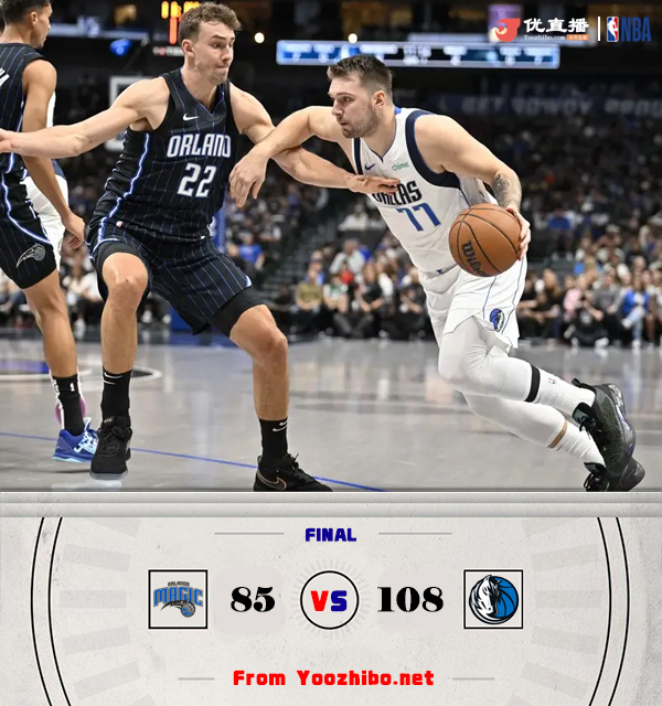 jrs直播网11月4日讯 NBA常规赛,独行侠主场迎战魔术,独行侠目前3胜2负,魔术2连败后3胜3负。比赛开始,魔术反客为主打得很主动,东契奇接连三分,马绍尔有攻有传,独行侠稳扎稳打反超比分,随后东契奇里突外投单节砍下14分助队领先到8分,次节独行侠一波10-2小高潮瞬间拉开比分,随后东契奇继续发力接连外线发炮单节又上双,独行侠再打出进攻波直接在半场领先到25分。下半场,双方命中率都有下降,但还是展开拉锯战,独行侠始终保持20分以上领先,末节魔术换替补练兵,克莱三分加喂饼助独行侠拉开30分以上领先,随后独行侠也进入轮换,最终独行侠108-85大胜魔术,送对手3连败。