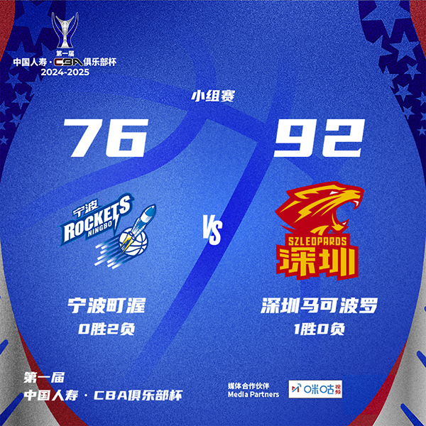 jrs直播网11月13日讯 CBA俱乐部杯惠州赛区,宁波对阵深圳。一开场,双方势均力敌,比分始终紧咬,次节马奇开始发力,内外开花连续拿分帮助宁波占据主动,周鹏上场带队反击,深圳完成12-2的攻击波以44-39领先结束上半场。下半场,深圳占得先机打出10-0扩大优势,宁波内外开花努力追赶,末节深圳稳扎稳打保持优势,宁波苦苦追赶无果。最终,深圳92-76击败宁波。