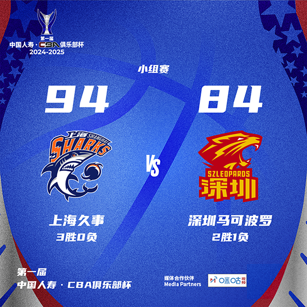 jrs直播网11月16日讯 CBA俱乐部杯惠州赛区,上海对阵深圳,本场比赛前两队都在俱乐部杯迎来连胜。深圳上来就多点开花接连反击打出15-4梦幻开局,洛夫顿手感一般,威尔逊中远投止血,但深圳还能回应并在首节领先9分,次节上海开始追分,打了不到2分钟深圳就犯满,随后深圳又陷入得分荒,上海接连外线三分反超比分,半场上海领先4分。下半场,深圳进攻端还是不在状态,打了半节上海14-4进攻波拉开双位数领先,三节上海领先到17分,末节上海接连三分命中直接拉开20分以上领先,深圳追分未果,最终上海94-84轻取深圳,拿到3连胜。