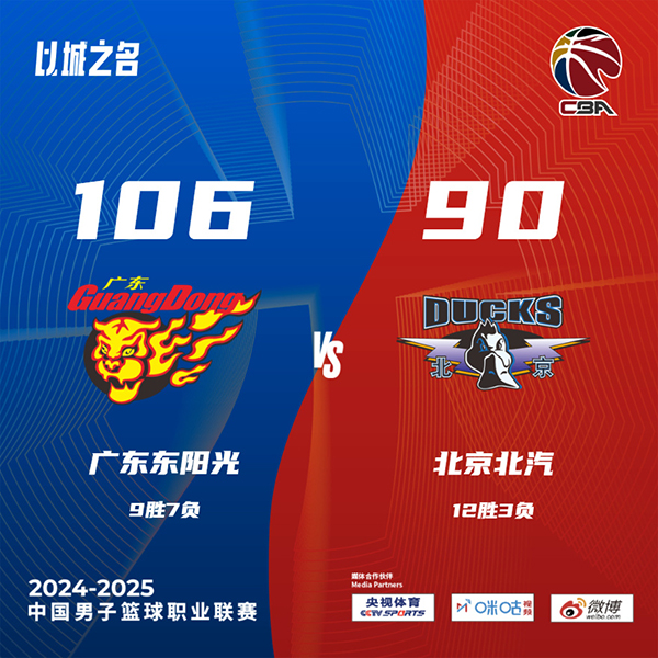 jrs直播网讯北京时间12月12日讯 CBA常规赛,广东对阵北京,广东上场比赛击败北控,北京则是输给山西,本场比赛胡明轩和曾凡博缺阵。开场后莫兰德和徐杰一内一外发挥出色帮助广东取得领先,北京进入状态较慢,广东接着利用外线三分将分差拉大。杰曼接连砍分努力为北京追分,黄荣奇扔进超远压哨三分。第二节上来吉伦沃特内外开花带领广东率先打出攻势,北京进攻端表现平平,场上分差一度被拉大到27分,北京半场结束前用两记三分稍稍止血。下半场回来虽然广东进攻效率下降,但北京也没能掀起有效反扑,分差始终在20分左右拉锯,最后一节北京努力追分依旧未果,最终广东106-90北京取得2连胜,北京遭遇2连败。
