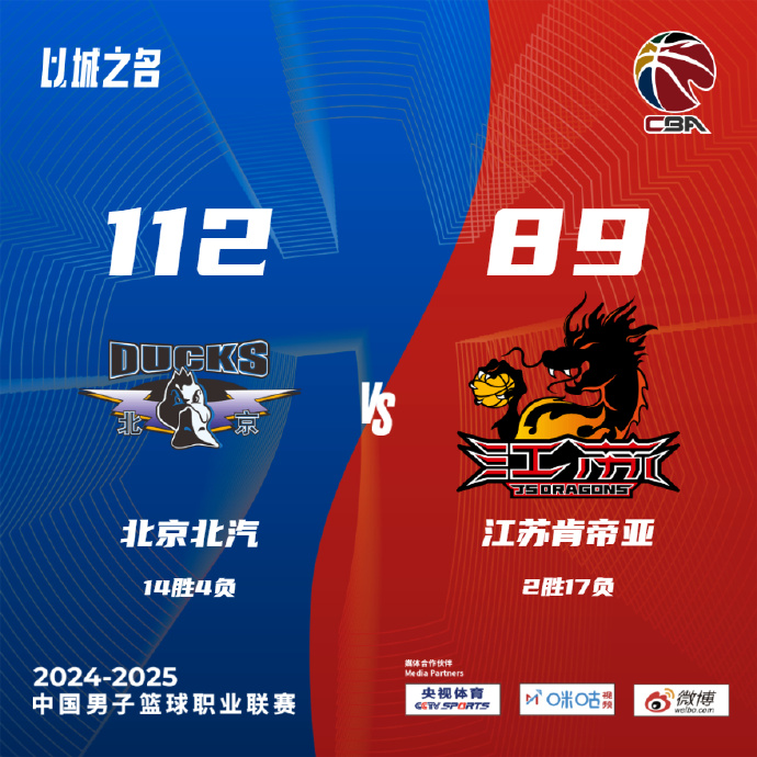 jrs直播网12月18日讯 CBA常规赛继续进行,北京主场迎战江苏,周琦此役感冒严重缺席,北京上场大胜天津终结三连败,目前13胜4负位列联赛第6,江苏遭遇连败,2胜16负排在联赛倒数第二。首节开打后主场作战的北京早早发力,雷蒙、丘天和所罗门轮番取分,率队打出11-2开局,江苏三外援联手取分稳住局势,但曾凡博连投带罚强势回应,首节结束时北京领先6分,次节回来,江苏进攻彻底断电单节仅得到11分,北京火力不减连续轰出得分高潮,半场战罢,北京确立28分优势。易边再战后北京进攻火力放缓,刘泽希手感滚烫连中三分,但北京及时回暖牢牢占优,三节结束后北京依然领先29分,末节上来,两队陆续换上替补阵容,北京始终保持大比分优势,最终北京112-89大胜江苏送对手三连败。