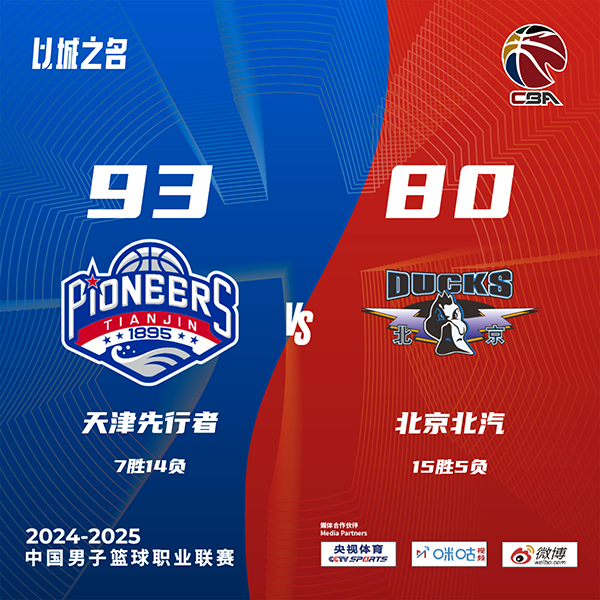 jrs直播网讯北京时间12月23日讯 CBA常规赛,北京客场对阵天津。北京15胜4负高居联赛第四,天津8连败目前6胜14负排在倒数第四。周琦本场缺阵。比赛开始,天津率先发力,内外开花打出17-5的开局,北京不断冲击内线频频得手努力追赶,次节双方围绕两位数的分差展开拉锯战,天津多点开花扩大优势,北京无力招架,半场战罢天津49-33领先北京。易边再战,北京奋力反击一度将分差迫近到只剩7分,天津连投带罚稳住局势,末节北京一波9-0迅速缩小分差,林庭谦挺身而出连得6分率队打出14-2的攻击波强势回应,北京苦苦追赶无果。最终,天津93-80击败北京,结束了自己的8连败。