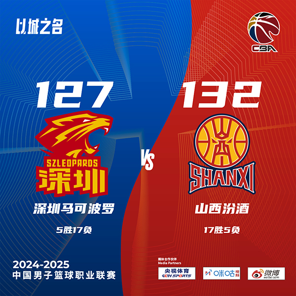 jrs直播网讯北京时间12月24日讯 CBA常规赛,深圳主场迎战山西,深圳目前5胜16负排在第18位,山西则是16胜5负高居积分榜次席,本场比赛,山西外援古德温被禁赛。比赛开始,双方上来都迅速进入状态,并展开对攻战,随后威姆斯有攻有传,联手汤普森助队一度领先到双位数,但山西节末发力追到差3分,次节周鹏发力,单节连中3记三分带队重新拉开比分,但张宁站出来外线强势回应3记三分止血,原帅半场结束之前的三分再进直接反超2分。下半场,迪亚洛接连单打帮助山西拉开比分,但周鹏还能扔进三分,随后周鹏三分被莱蒙垫脚受伤下场,但约翰逊接连中远投轰出9-0反超6分,末节双方继续拉锯战,周鹏重新披挂上阵,山西很快犯满,深圳保持领先,迪亚洛违体犯规后深圳领先到8分,但深圳连续失误,张宁一攻一传拖入加时。加时赛,迪亚洛成为主攻点帮助球队反超3分,贾明儒也接连贡献得分,迪亚洛6犯毕业,周鹏关键绝平三分不中,最终山西加时132-127力克深圳。