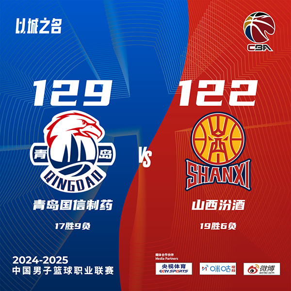 jrs直播网讯北京时间1月3日讯 CBA常规赛,青岛主场迎战山西。青岛16胜9负排联赛第八,山西19胜5负高居联赛第二。比赛开始,青岛率先发力,内外开花轰出25-6的完美开局,山西不断冲击内线苦苦追赶,次节青岛命中率下降,山西外线开火连中3记三分迅速缩小分差,半场战罢青岛62-57领先山西。易边再战,双方大打对攻,青岛内外开花保持优势,末节山西命中率下降,青岛持续输出扩大领先,山西大势已去无力回天韦瑟斯庞和段昂君都犯满离场。最终,青岛129-122击败山西,主场过关。
