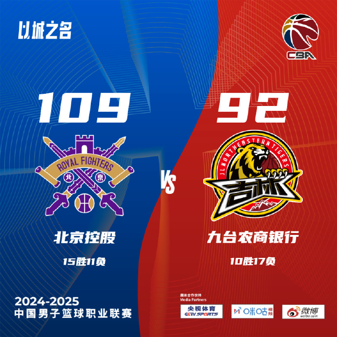 北控(15-11):邹雨宸18分5篮板、张帆12分5篮板5助攻5抢断、萨林杰13分8篮板7助攻、里勒24分6助攻、陈国豪17分5篮板、刘晓宇6分5助攻、特莱斯13分6篮板