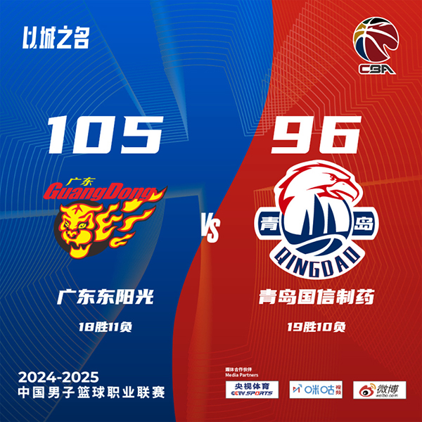 jrs直播网讯 北京时间1月10日讯 CBA常规赛,广东主场迎战青岛,两队最近状态都不错,都经历4连胜,广东17胜11负排在第9位,青岛则是19胜9负排在第7位。比赛开始,吉伦沃特和徐杰接连三分为广东开局,而青岛则是靠外援韦瑟斯庞和米奇撑起进攻端,他俩带队一波9-0首节领先4分,次节广东接连失误,韦瑟斯庞状态出色里突外投连砍8分带队领先到双位数,随后吉伦沃特里突外投苦苦支撑,杨瀚森接连内线强打,青岛半场依旧领先9分。下半场,双方展开拉锯战,吉伦沃特继续撑起球队进攻,青岛外援联手回应,徐昕攻防两端建功助广东三节反超2分,末节徐昕接连送大帽,广东打出10-0拉开比分,打了4分多钟段昂君接连三分终于止血,但广东始终保持住10分左右领先,最终广东105-96逆转青岛,拿到5连胜。