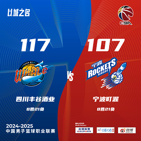 jrs直播网讯北京时间1月11日讯 CBA常规赛,四川对阵宁波,两支球队最近表现都不理想,四川遭遇5连败,宁波也是遭遇4连败。开场后四川靠萨姆纳和亨特抢占先机,随后宁波在马帝昂的带领下反超比分,王俊杰状态不错多次冲击内线拿分。第二节上来宁波多次出现失误,四川趁机追上比分,王云章多次在篮下得手,随后两队陷入僵持。易边再战,两队依旧打得十分胶着,四川这边多点开花,宁波则是靠马奇凭借个人能力不断拿分,萨姆纳和马里奇在三节末帮助四川稍稍扩大优势。第四节王云章继续通过突破拿分,宁波依旧紧追不舍,依旧是萨姆纳站出来带领四川打出一波攻势将分差拉大到两位数,比赛时间所剩不多,宁波未能再追上比分,最终四川117-107击败宁波结束5连败,宁波遭遇5连败。