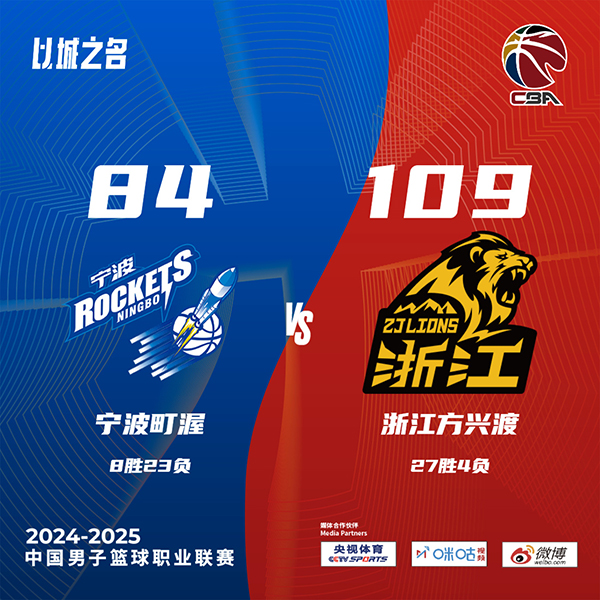 广厦(27-4):布朗28分5板4助,胡金秋22分9板,马扬诺维奇10分10板,奈特14分6板,孙铭徽6分8助,赵嘉仁8分2助,赵岩昊3分2板,林秉圣6分2助,卡尔顿8分2板。