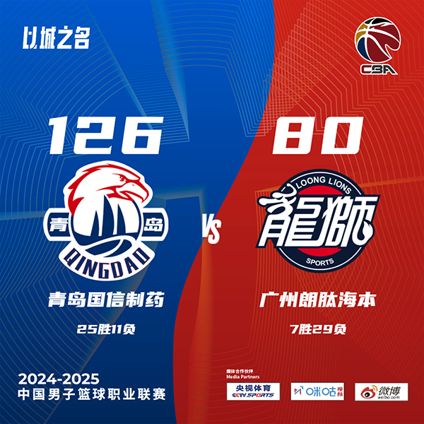 jrs直播网讯北京时间3月5日讯 CBA常规赛,青岛今日迎战广州,前者近来取得两连胜,后者则是遭遇七连败。比赛上来,两队就打得很胶着,场上比分交替领先,不过本节的最后三分钟时间里广州一分未得,青岛趁势打出一波10-0的小高潮,次节韦瑟斯庞的反击上篮将分差拉开到两位数,好在是广州在节末连拿六分完成止血,半场结束时广州还落后4分;易边再战,场上局势完全一边倒,广州在近半节的时间里只拿到4分,三节结束时青岛已经建立起30分的领先优势,比赛在末节早已失去悬念,最终青岛大胜广州,送给后者八连败。