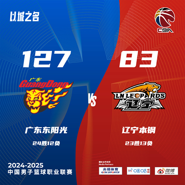 jrs直播网讯北京时间3月5日讯 CBA常规赛,广东对阵辽宁,广东和辽宁目前分别排在联赛第九和第八,上场比赛两队都是取得胜利,本场比赛胡明轩复出。开场后广东率先打出攻势以21-6开局,徐杰表现积极,伯克更是状态火热内突外投不断砍分,赵继伟和威尔斯连续打出反击止血并且一路追分,贝兹利和吉伦沃特强攻内线帮广东再度将分差拉大到两位数。第二节辽宁先是连续通过罚球拿分,但杜润旺状态神勇,不仅空位三分机会把握住,还多次跟进攻筐得手,广东趁机将领先优势扩大到18分,随后辽宁努力追分,但无奈手感并不理想,赵继伟压哨大号两分命中。易边再战,广东外线手感依旧火热,上来一阵三分雨下继续扩大优势,辽宁进攻端打得艰难,老将韩德君在内线强攻勉强追分。最后一节广东依旧攻势连连,场上分差继续被拉大,比赛早早进入垃圾时间,最终广东127-83大胜辽宁。