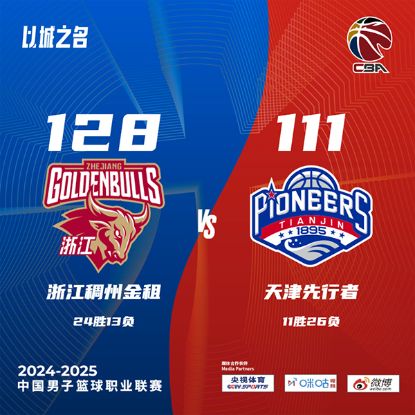 jrs直播网讯北京时间3月8日讯 CBA常规赛,浙江主场迎战天津。浙江23胜13负排联赛第9,天津11胜25负排第15。比赛开始,双方开场大打对攻,大卫-詹姆斯高效发挥,吴前连中三分给出回应,次节浙江持续发力,达米安-琼斯内外开花带队将分差拉开到两位数,大卫-詹姆斯延续火力带队追赶,半场战罢浙江69-58领先天津。易边再战,浙江攻防两端压制天津,轰出15-2的攻击波将分差拉开到30分以上,末节天津发起反击稍稍缩小分差,无奈之前挖坑太大。最终,浙江128-111轻取天津,主场过关。
