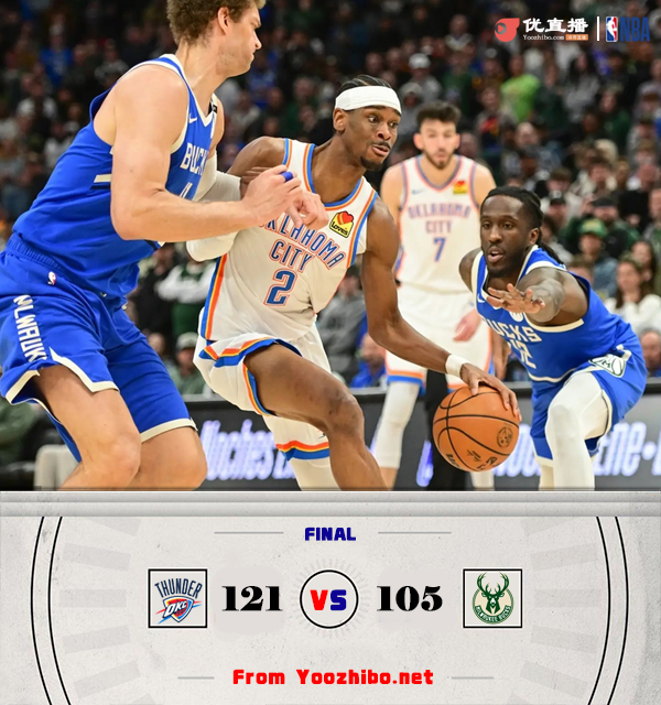 jrs直播网讯北京时间3月17日讯 NBA常规赛,雷霆对阵雄鹿,雷霆最近取得2连胜稳居西部榜首,雄鹿最近也是拿到2连胜。开场后两队你来我往就打得相当激烈,雷霆一度连得6分取得领先,特伦特替补登场后联合利拉德打出攻势在首节结束帮助雄鹿反超比分。第二节上来乔和哈尔滕施泰因内外联手帮助雷霆打出攻势夺回领先,雄鹿进攻主要靠利拉德和字母哥两人发挥,亚历山大接连砍分回应带领雷霆将分差拉大到两位数。易边再战,雷霆延续攻势继续扩大领先,雄鹿多点开花努力追分,但雷霆始终保持稳定的发挥,最后一节字母哥带队虽然略微缩小一些分差,但分差还是维持在两位数,最终雷霆121-105轻松击败雄鹿取得3连胜。