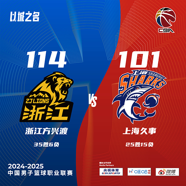 广厦(35-6):布朗49分1板6助2断、胡金秋21分13板、纳纳利13分2助、奈特10分5板1助、朱俊龙9分6板5助2断、赵嘉仁6分3板、赵岩昊3分3板、吴骁2分7板1助、卡尔顿1分9板3帽、林秉圣1板。