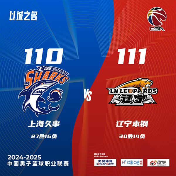 jrs直播网讯北京时间3月23日,CBA常规赛上海久事主场迎战辽宁本钢,半场上海54-57辽宁,比赛还剩最后2分钟辽宁领先9分,随后上海反扑追至1分分差,最后3.3秒,辽宁张镇麟为避免上海犯规战术直接选择超远三分出界,留给上海0.5秒最后一攻后场发球洛夫顿空接出手弹框而出,最终辽宁111-110险胜上海。