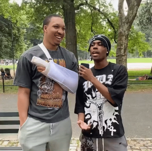 格威在街头接受采访,左手上打着石膏,谈到凯尔特人是如何输给热火的,格威笑着说道:你和我都想着同样的问题,我也不知道。听着,他们马上就要被(掘金)终结了,我们没事的。