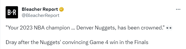掘金3-1领先后,追梦格林在节目中表示:你们的2023年NBA总冠军是丹佛掘金,已经加冕了。