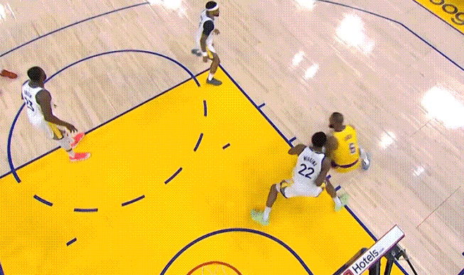詹姆斯背打维金斯最终背身5秒违例,这是非常少见的,詹姆斯也感到不理解。詹姆斯开场的失误偏多,4分半就有多达3次失误,其中包括反击良机直接甩底角的里夫斯,给的球太大了。