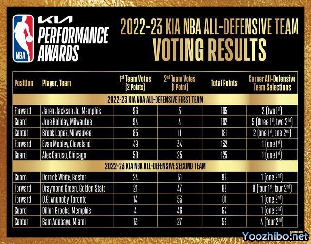 来源:jrs直播网05-10 11:06jrs直播网05月10日,NBA官方公布了2022-23赛季常规赛最佳防守阵容。