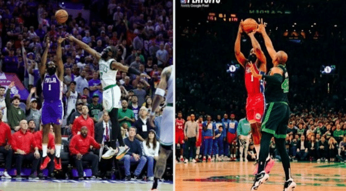 这场比赛的哈登打出了史诗级的一战,如果没有他,76人几乎一定会输掉比赛。第四节最后时刻,哈登抛投命中,扳平比分。加时赛当塔图姆的三分球让凯尔特人领先2分,76人再度处于绝境。还剩下5秒时哈登轰进三分球,再联想到之后斯玛特的绝杀超时,所以哈登的三分球就是准绝杀,成功帮助费城76人拿下胜利。全场下来,哈登42分8篮板9助攻4抢断的数据,相当出色。