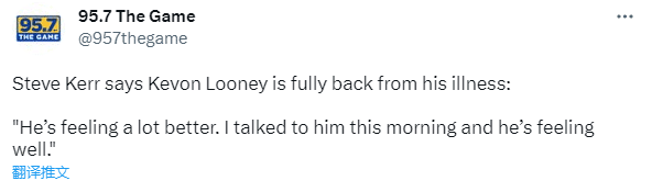 G3赛前,勇士主帅科尔表示卢尼已经完全康复了,对记者说:他感觉好多。今天早上我和他谈过了,他感觉很好。