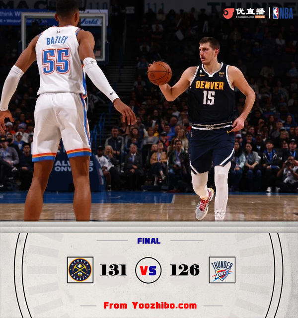 雷霆今日坐镇主场迎战掘金,雷霆状态一般最近4场比赛输掉3场,排名也跌至西部第12的位置;掘金这边则受困伤病,以穆雷、小波特为首,本场比赛掘金总计7名球员因伤无法出战,他们最近4场比赛输掉3场排名也跌落至西部第7。急需胜利缓解颓势的掘金从开局就展现高效状态,以首节拿下14分的约基奇为首,掘金单节轰下38分早早拿到17分的领先;次节开局场面一片祥和掘金一路维持着接近20分的优势,然而后半段雷霆突然发难,他们用一波12-0的攻势打了掘金一个措手不及并将劣势追至6分进入下半场。下半场掘金依旧没能找回状态,这支上半场砍下69分的球队在第三节仅得15分,而雷霆这一节彻底放飞轰下34分的同时反超13分。末节掘金及时醒悟,约基奇拿下10分5助稳定局面,戈登最后时刻连砍12分将比赛拖入加时。加时赛掘金一波7-2开局奠定领先也奠定了胜局。最终,掘金加时力克雷霆拿下比赛。
