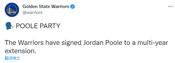 来源:jrs直播网10-17 12:02jrs直播网10月17日,勇士官方宣布续约普尔,勇士官推晒照庆祝并且配文写道:泳池派对,勇士已经和乔丹-普尔签下一份多年续约合同;根据之前的报道,双方签下4年1.4亿美元的大合同;签约后普尔发声并且首次回应冲突事件,恭喜维金斯续约。